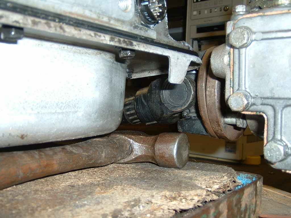 One choice is to move the LT230 further back, but Ive already moved it back 3" when I fitted the 700r4, this would require moving it back a further 3". The other choice is to cut the corner of the gearbox of. Sounds dramatic, but if you study the photos above I think its easily done. This means I might be able to get the overall transmission length to be the same as the 700R4 conversion due to the extra clearance from the missing corner.