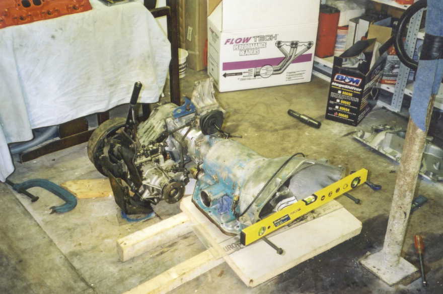 This picture shows what im trying to achieve; namley Small block chevy, TH350 autobox and Land Rover LT230 all coupled together. At this stage, i was trying to take measurements and make sure it was all going to fit.