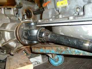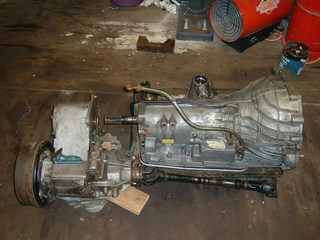 These photos show the Jag 4L80e lined up with a LT230. First problem is that front propshaft hits the casing, whereas on a std 4l80e this part would be rounded off, giving better clearance.