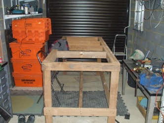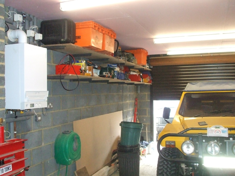 Don’t really want to post the contents of my Garage all over the Internet, but here’s a couple of photos of some details. I’ve taken advantage of the high ceiling with some custom shelves made from 40x40x3 angle iron and 18mm plywood.