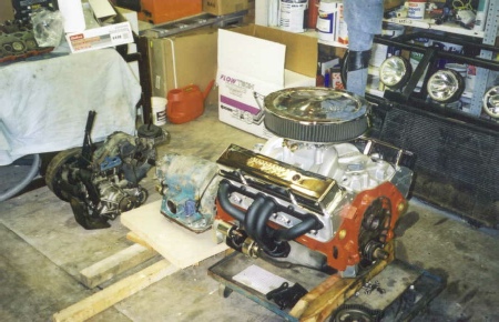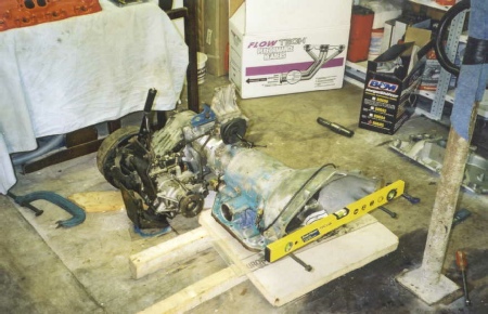 This picture shows what im trying to achieve; namley Small block chevy, TH350 autobox and Land Rover LT230 all coupled together. At this stage, i was trying to take measurements and make sure it was all going to fit.