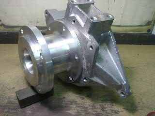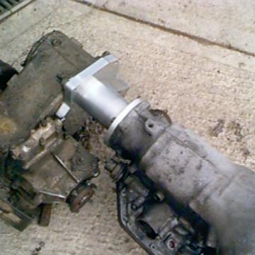 The following pictures show Paul’s adapter. This design benefits from the fact that you don't need to source the original adapter that Land rover used. However, this design doesn't have provision for mounting the high/low/diff lock lever. Paul has this CNC machined from billet ally.