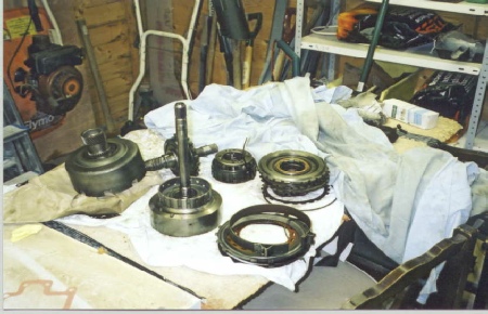 This picture shows the three clutch packs. The long shaft is called the stator shaft,