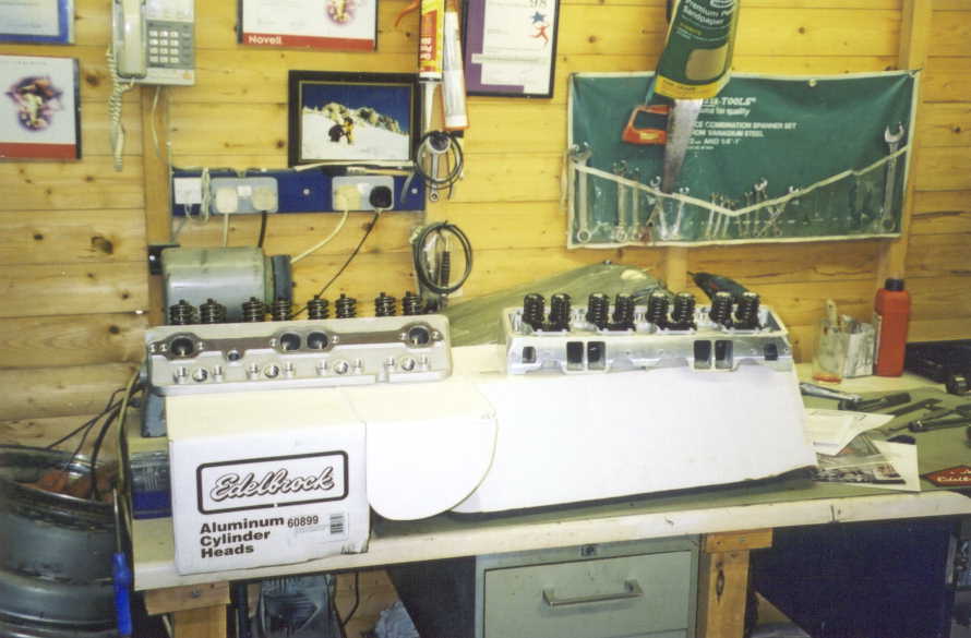 With the proceedes from selling the rover engine (which is now in an MGB somewhere), i bought some nice Edelbrock Aluminium heads: