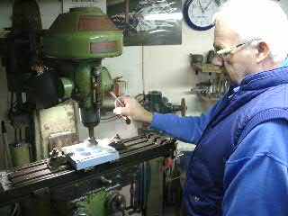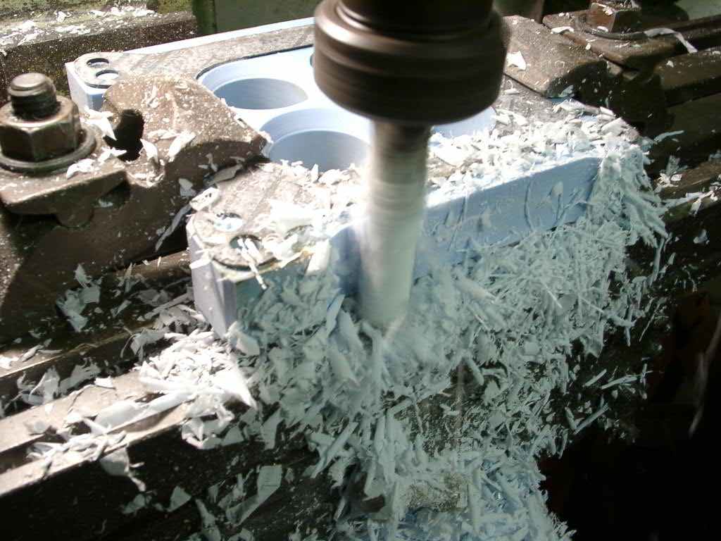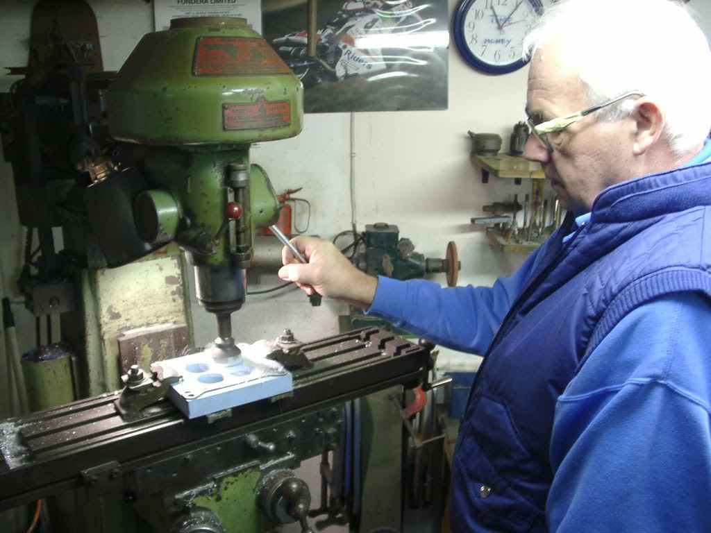 The carb tends to get very hot because there is no heat spacer between the manifold and carb. You can purhcase proper spacers, but i just made my own. Most companies sell "phonelic" spacers, but i found some nylon in the shed, and machined it following the gasket as a template. This is the prototype spacer,To improve airflow, we radius the two small holes. (That's Dad!).