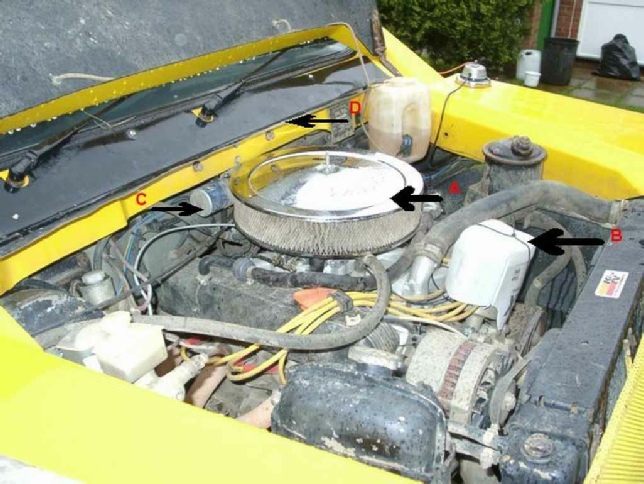 D=Metal plate to prevent water spilling over the bonnet into the engine bay