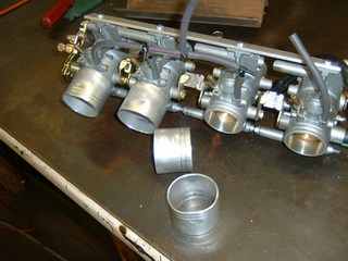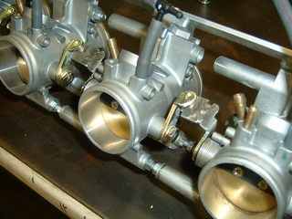 The next problem is that the throttle plates no longer touch each other because the spacing has been increased. The was solved by carefully tig welding small extenders onto two of the bodies.