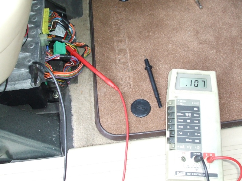 DVM showing 107 ohms (Shows .107 as its on the 2K Range)