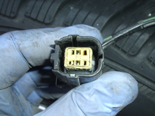 With the tank dropped down I was able to reach in and disconnect the plug. Immediately I noticed that the connector was damaged. Looks like it was forced on and the pin when in the wrong direction. So I cleaned it all up and also straighted out the male end on the tank. I then carefully refitted the connector.