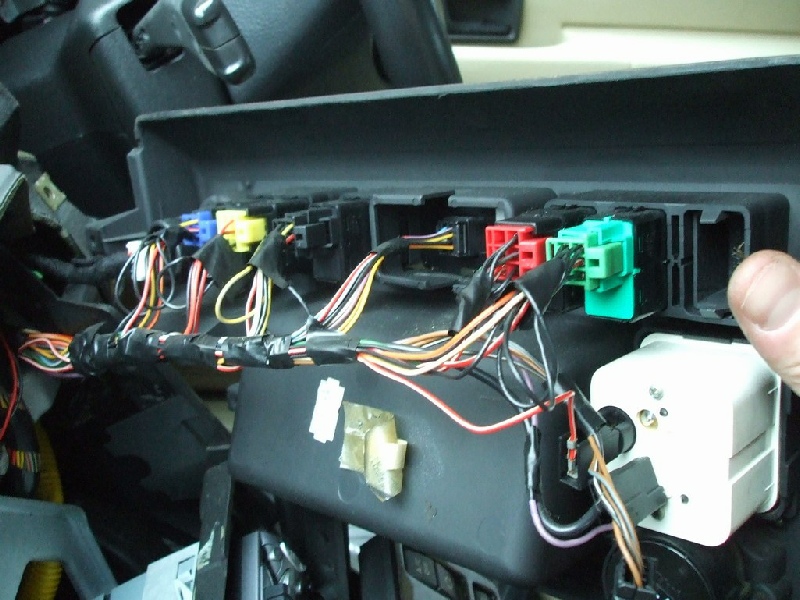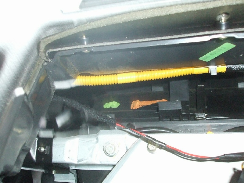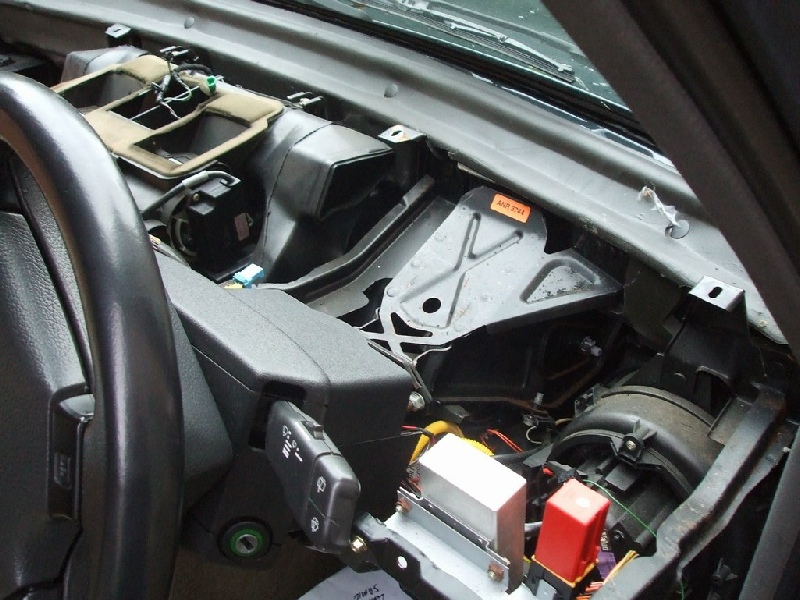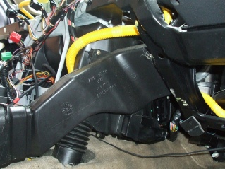 Follow the yellow air bag wiring, it is clipped to the dash in several places. Also the hvac loom is clipped to the dash.