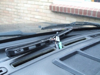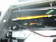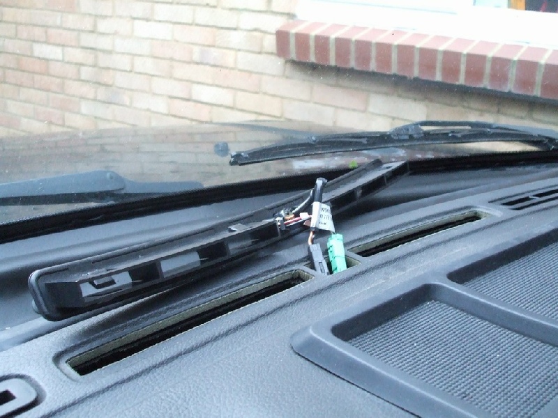 Lever the air duct out and disconnect the alarm and sun sensor. The wire is also clipped underneath, you need to unclip it.