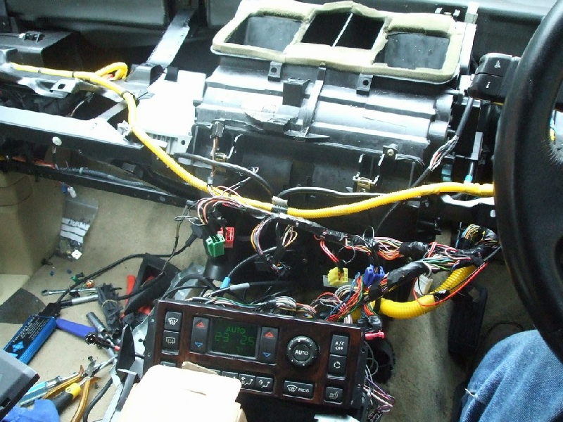 Now tighten the bolts in the footwell holding the dash. Reinsert the a/c probe carefully into the evap.