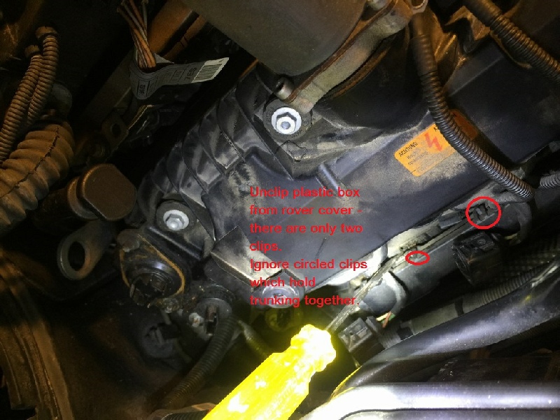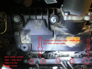 There’s two clips that hold the whole thing onto the rocker cover, Ignore the plastic clips that keeps the box together.