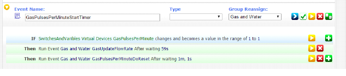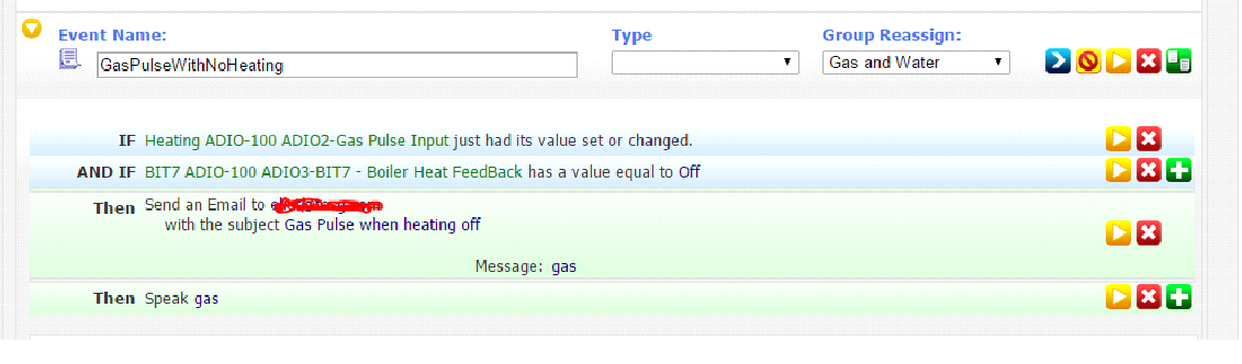 The last event is the gas leak detection safety feature – it only works because I ONLY use gas for heating and I have a feedback from the boiler to tell me when it is running. If you have other things using gas, then you would need to amend this event to only monitor when the house is unoccupied or overnight when you don’t expect to see gas flowing.
