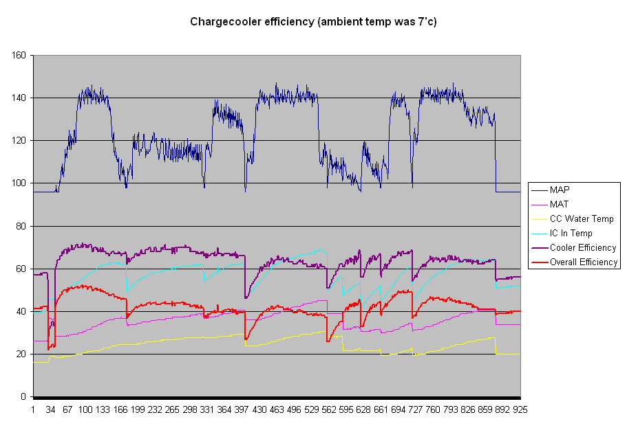 Here's the results for the Chargecooler. I fitted a temp probe to the water circuit on the CC. Show's that CC is 70% efficient, but less than 50% efficient overall (i.e. compared to ambient).