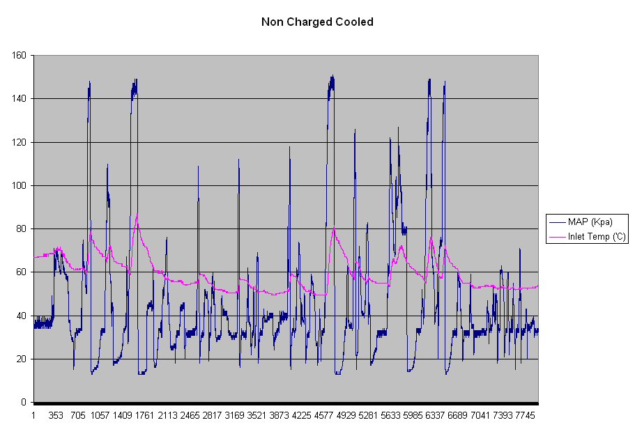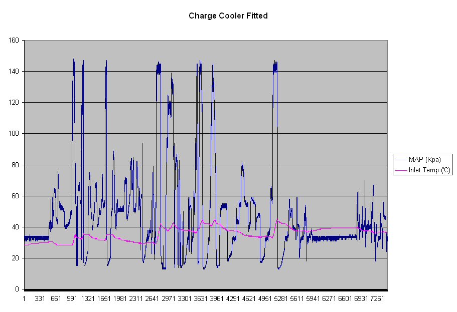 Here's two datalogs, both taken with an ambient temperature of about 10'c, in fact I believe the non intercooled run was done at 5'c