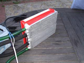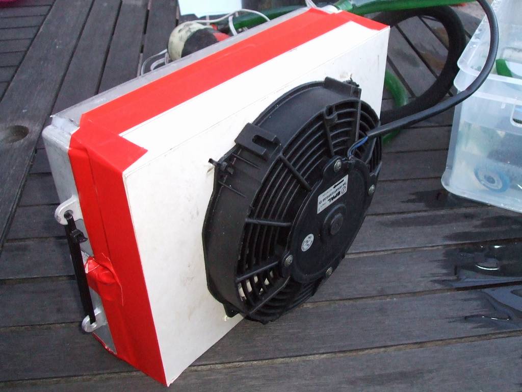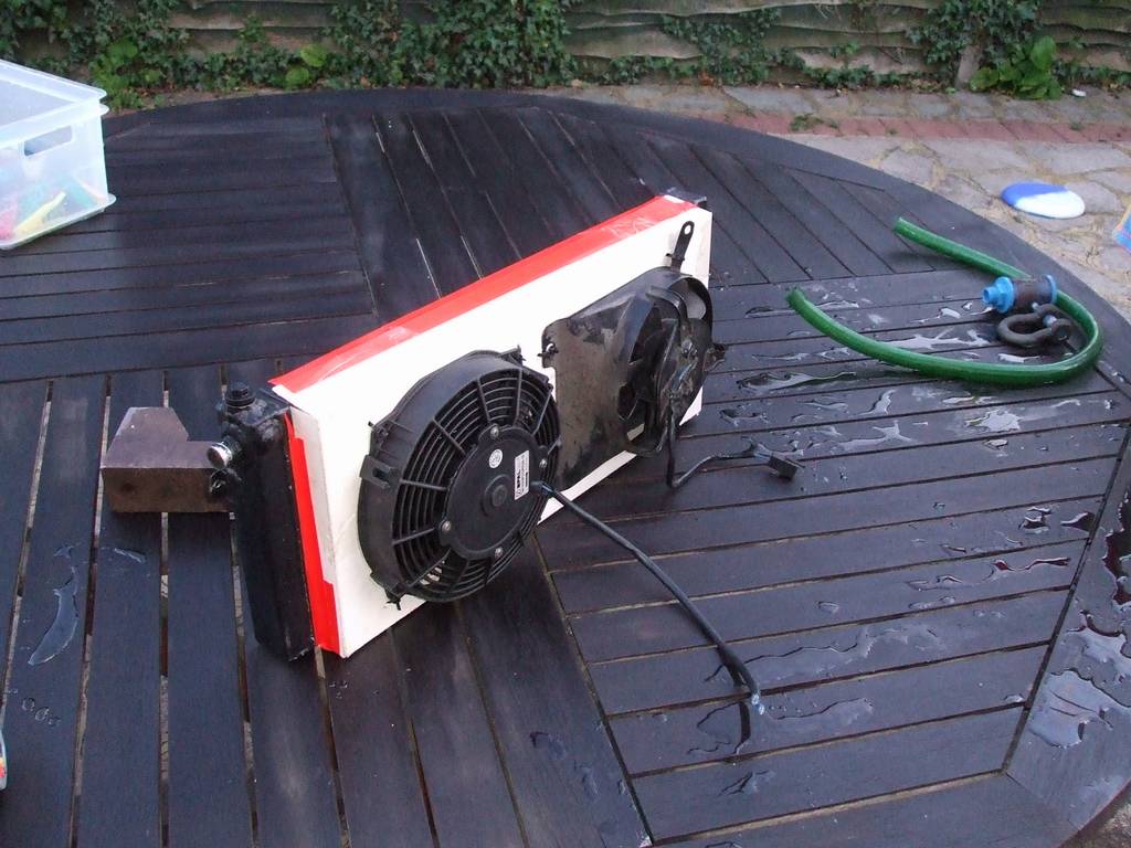 First I joined two Jaguar XJR chargecooler cores together and added a small fan -