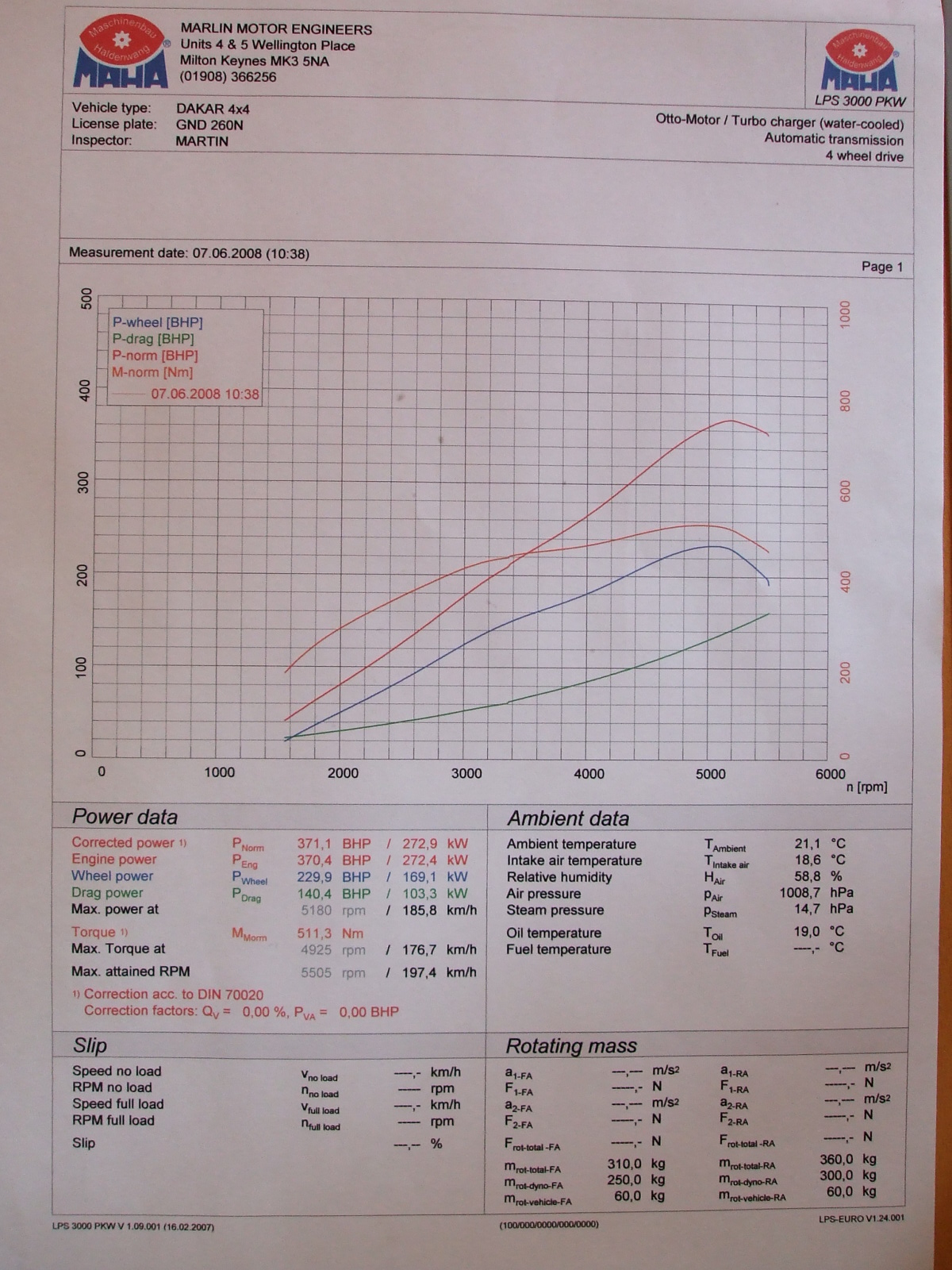 Dyno gave 230BHP at the wheels, 370BHP calculated at the flywheel. Considering that