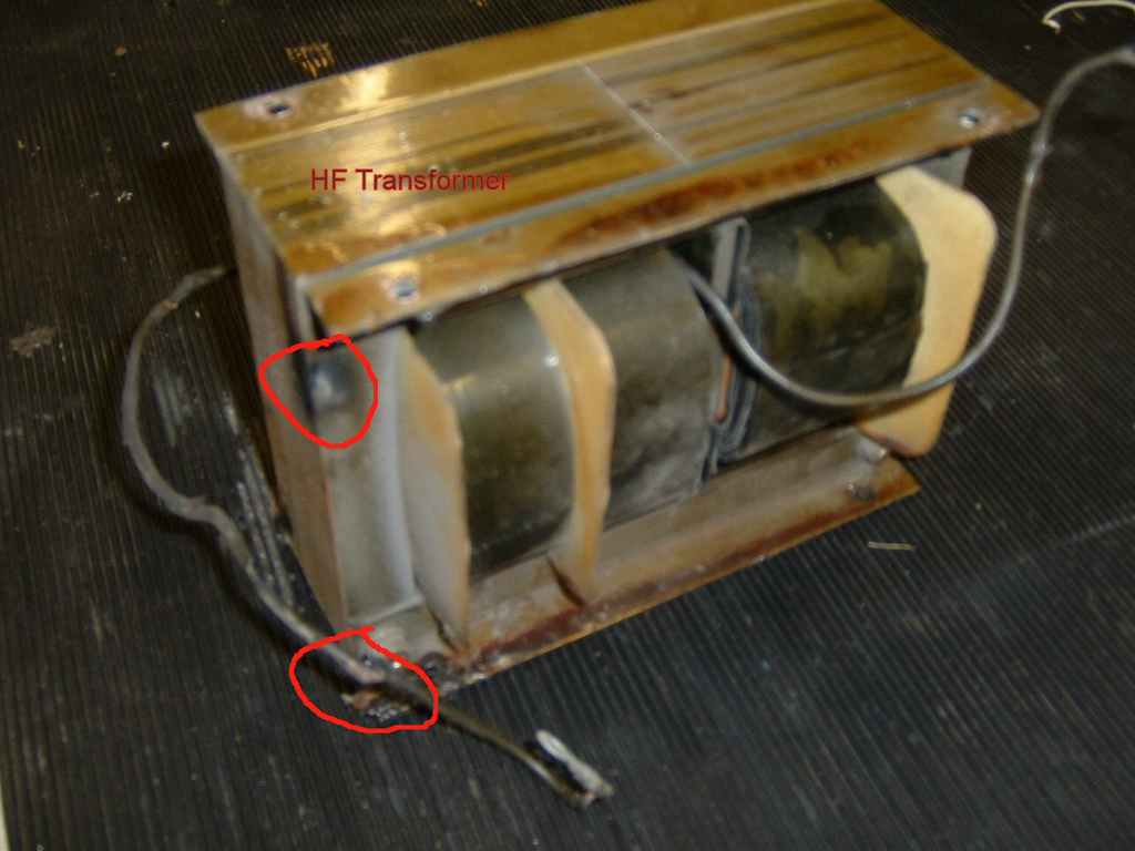 After replacing some 20 spade terminals and a good study of the wiring diagram, I started looking at the HF transformer, the fault was apparent, the insulation had crumbled away and was short circuiting against the chassis.
