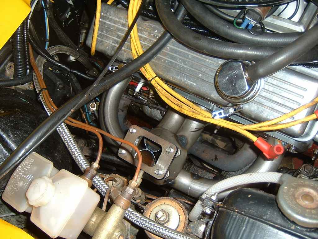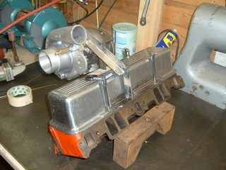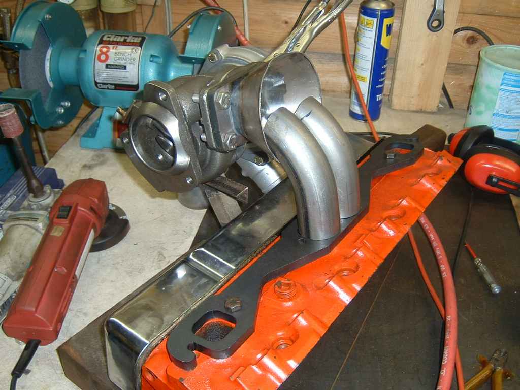 The turbo is centered on the two middle exhaust ports at exactly 90 degrees, making fabrication easier (I hope!!)