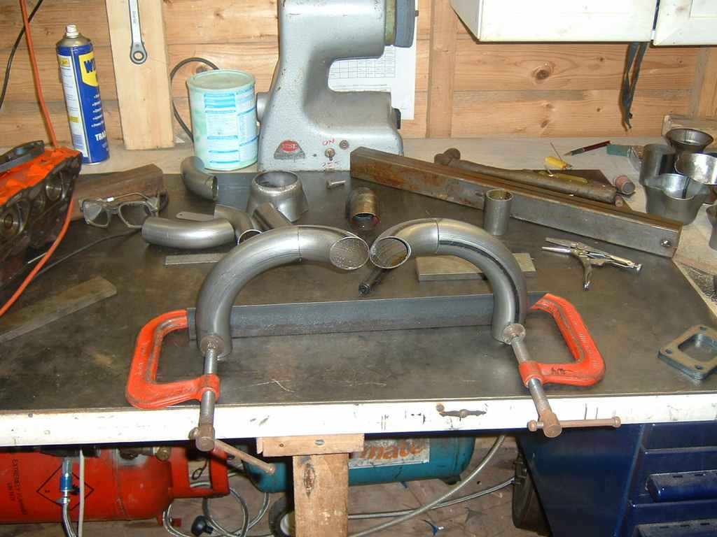 This enables me to use a spare cylinder head on the workbench to create the manifolds, without having to constantly go back and try it on the car.