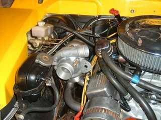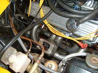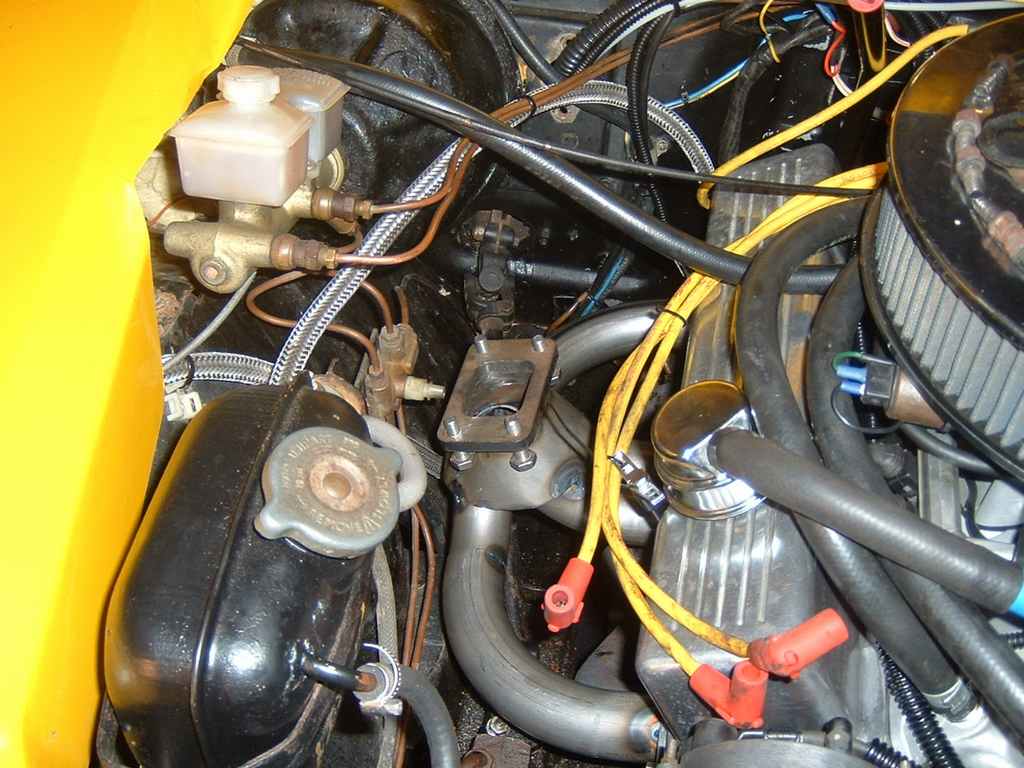 I Couldn't get the collector to meet the turbo exactly where i wanted it, so I just tacked in on and tried it in the car. It fits, but its too close the the master reservoir and steering shaft. So I need to fettle it some more.