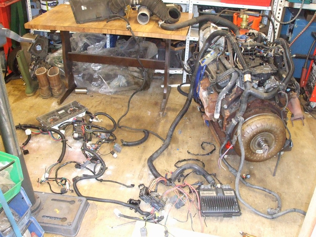 Essentially I removed the rear 02 wiring, the wiring from the transmission position selector (neutral lock out) and the air conditionning wiring.